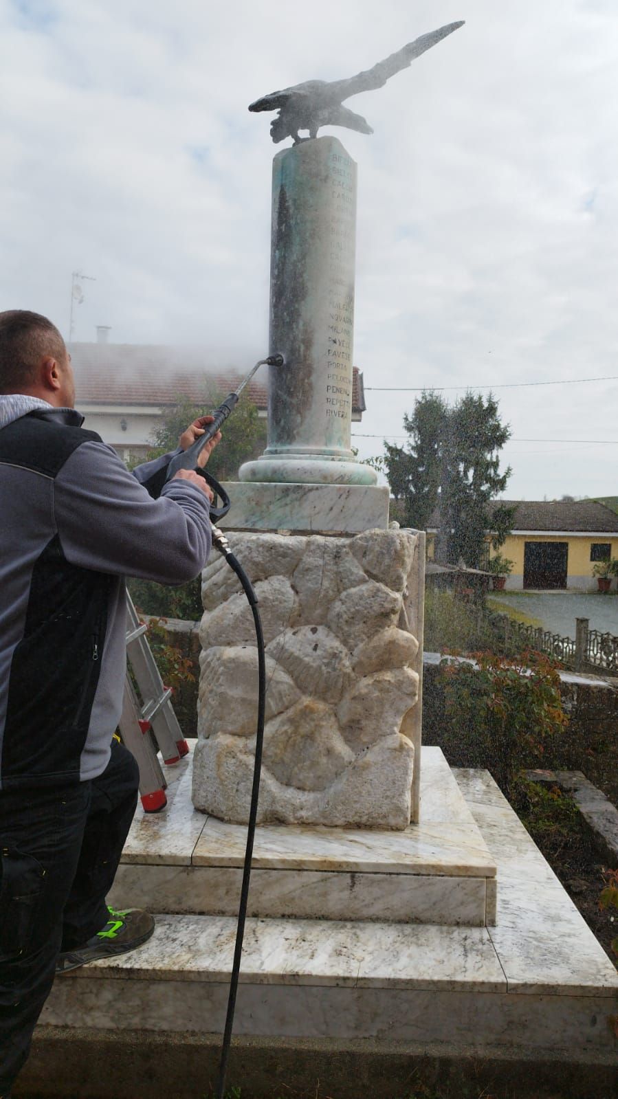 Nei giorni scorsi abbiamo portato a termine un intervento di restauro conservativo sul Monumento ai Caduti del Comune di Rocchetta Palafea, in provincia di Asti. Si tratta di un’opera commemorativa in marmo e bronzo, che riveste un forte valore storico e simbolico per la comunità locale.