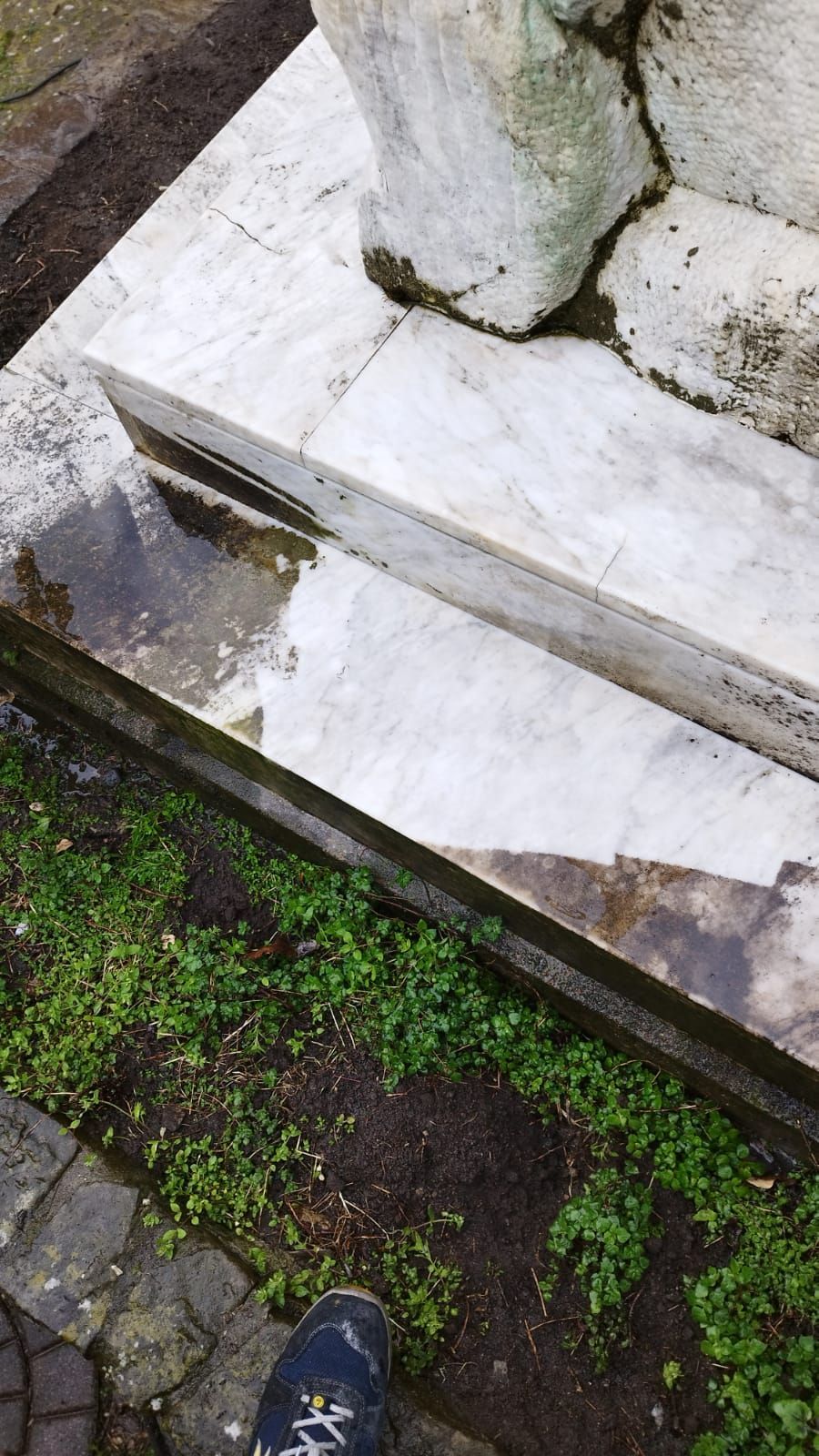 Il monumento versava in condizioni di evidente degrado dovute agli agenti atmosferici: annerimenti, incrostazioni calcaree e formazioni biologiche ne compromettevano la leggibilità e la resa estetica.