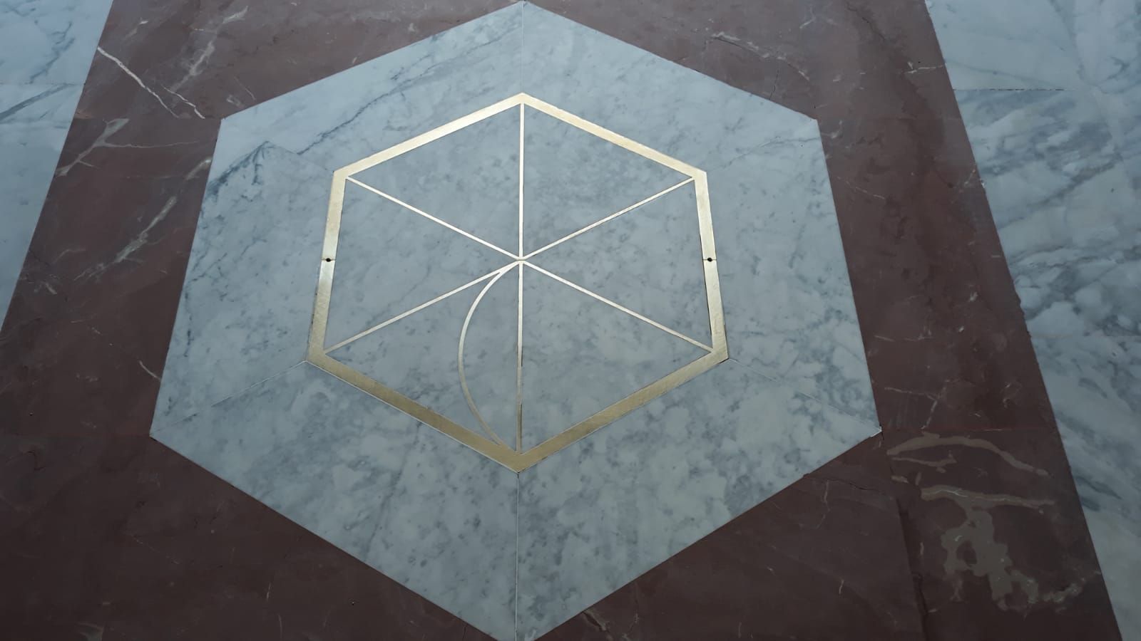 I pavimenti della chiesa, in Giallo Reale, Rosso Francia e Bianco Carrara, sono stati restaurati con grande attenzione. Le superfici, segnate dal tempo, sono state riportate alla loro bellezza originale grazie a un lavoro meticoloso di pulizia e ripristino. Inoltre, è stato inserito un raffinato inserto in ottone nello spazio creato appositamente per accogliere il nuovo fonte battesimale moderno ed essenziale.